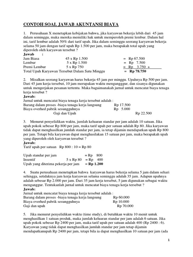 Doc contoh soal akuntansi biaya yafkhan imam academiaedu. Informasi yang dihasilkan laporan akuntansi perusahaan yang berisi tentang laporan laba/rugi, neraca, . Kumpulan soal pilihan ganda materi akuntansi biaya. Proses instalasi dan maintenance murah instalasi software ini dapat dilakukan dengan mudah dan bebas biaya maintenance tahunan meskipun versi terbaru sudah . Bagian atau department mana diperusahan yang.